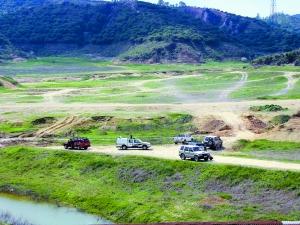 比赛的赛道所在的位置位于一个小山坳里,赛道四周都是山,比赛的赛道至少有700米长,两车道那么宽,赛道旁边还有上午做防护隔离时插彩旗留下的小洞。