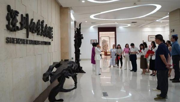 在旭生美术馆,与会嘉宾参观了用绘画的形式表现深圳特区辉煌历程的巨幅长卷《画说深圳》,张静蕊老师作详细讲解。展览分为“盼、拓、闯、升”四个主题。“盼”重现了深圳面貌和人们对美好生活的期盼;“拓”展现了改革开放初期创业者艰苦奋斗的生活;“闯”表现深圳敢闯敢试、敢为人先、埋头苦干的特区精神;“升”反映了深圳的亮丽、高新技术和人文情怀。本次展览不仅仅是对城市发展的一次记录,更是对“来了就是深圳人”这一创业标签的生动诠释,看到深圳的过去、现在和未来。