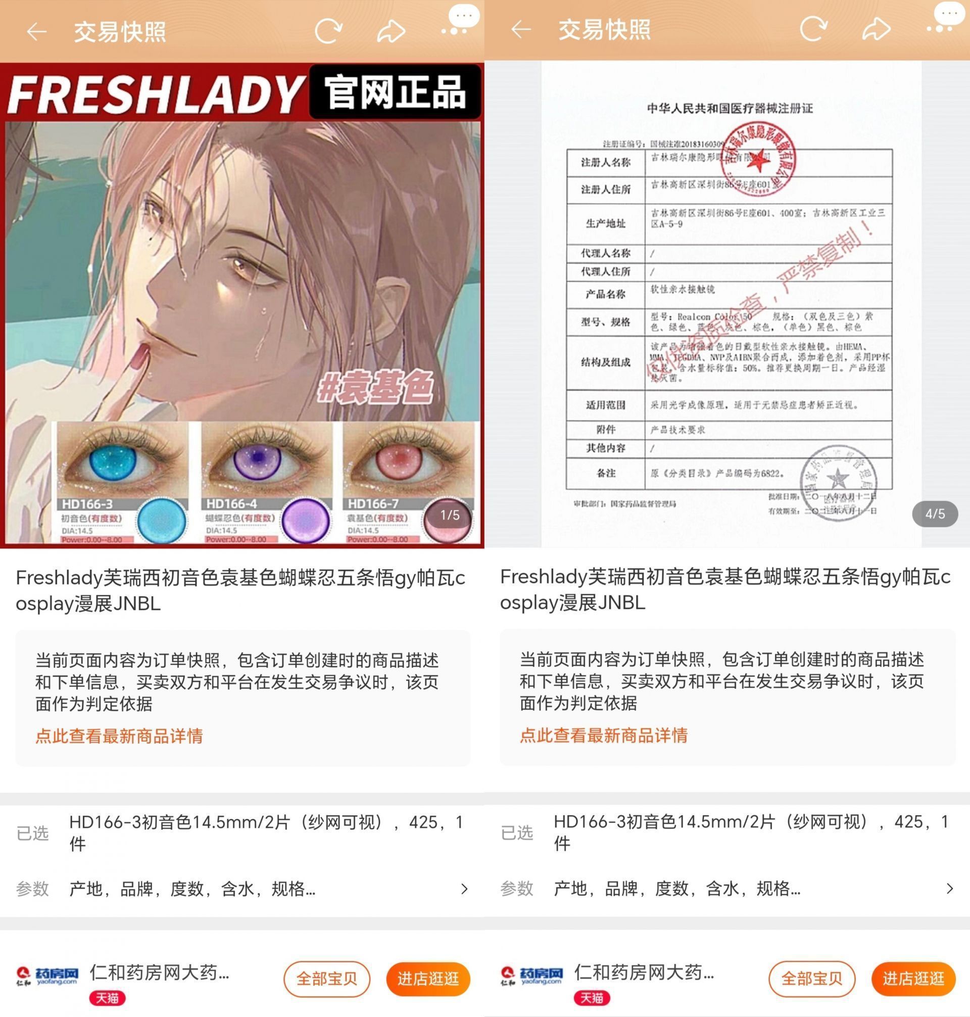 8月,小黎选择在天猫旗舰店“仁和药房网大药房旗舰店”(下称“仁和药房旗舰店”)购买同款美瞳。尽管购买前小黎与商家再三确认产品的品牌,但收到的却是品牌名为Comicparty(下称“C品牌”)的美瞳。